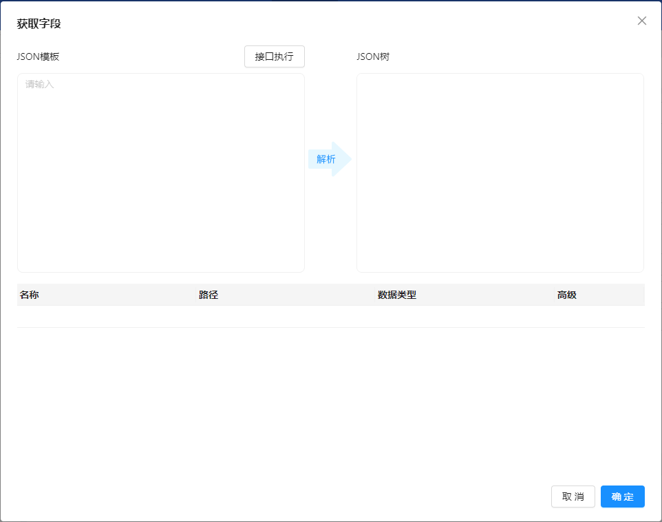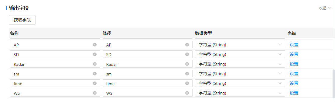主要根据请求接口返回的数据配置对应的数据类型和取数规则,并配置输出字段。