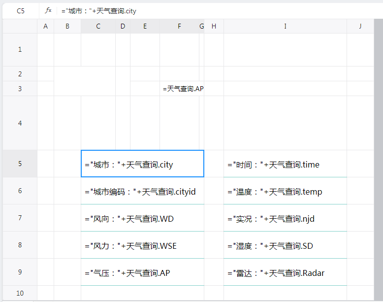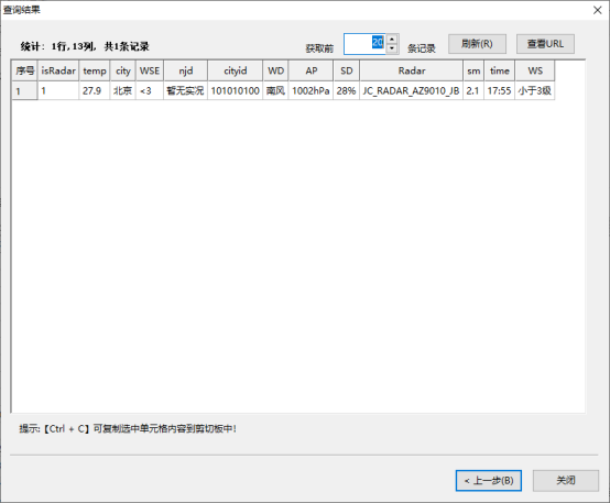 在进行“返回”相关配置之前,我们先来看一下“天气预报”实时的原始数据: